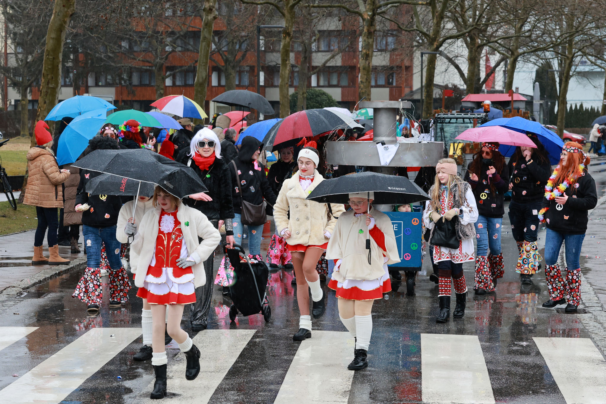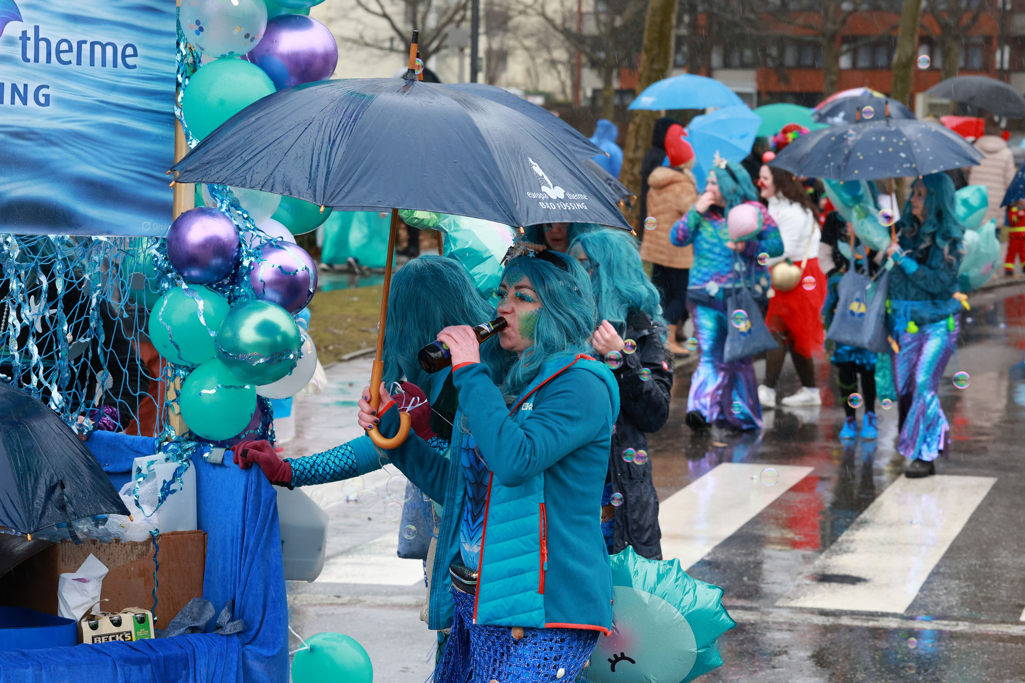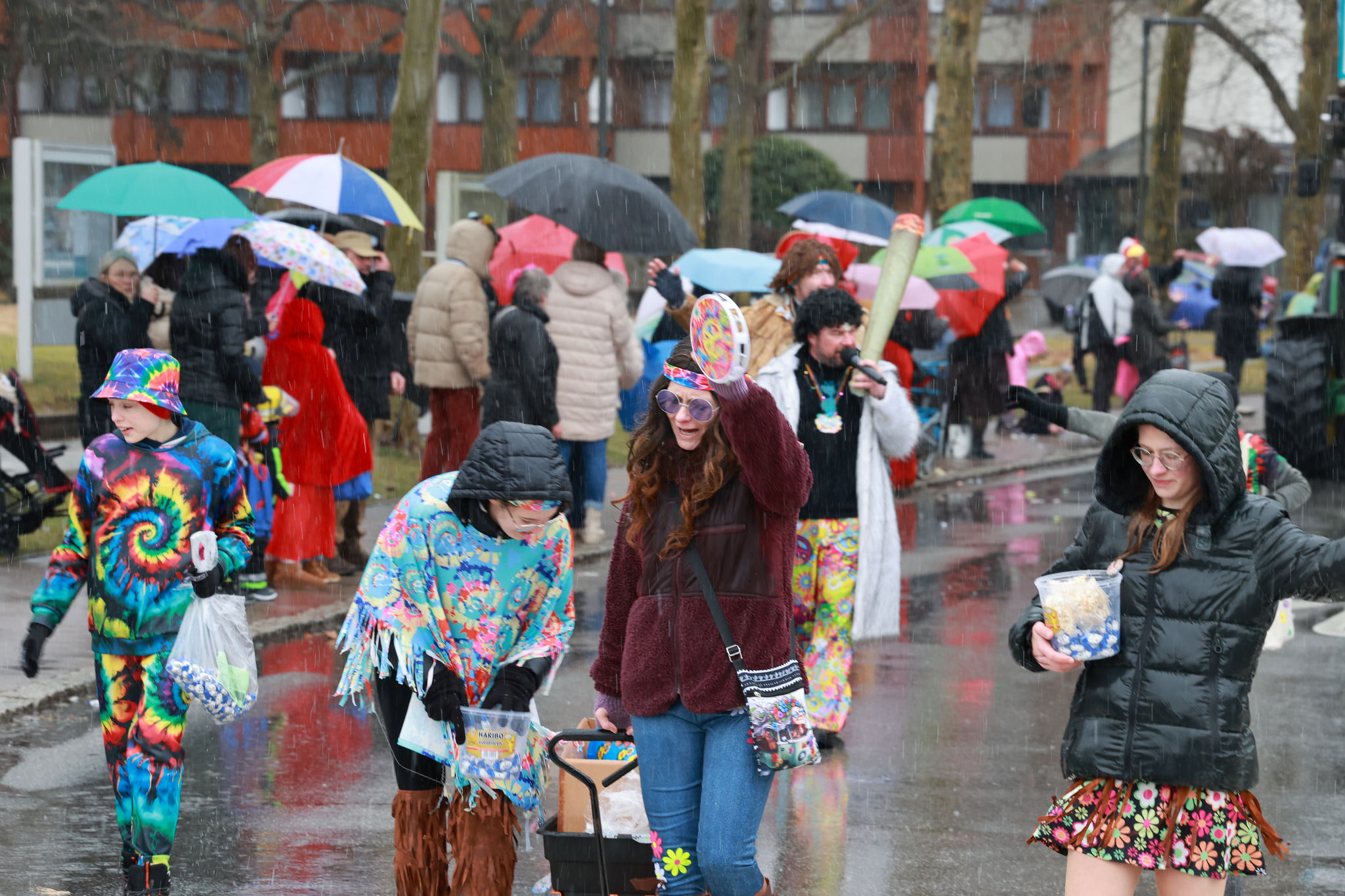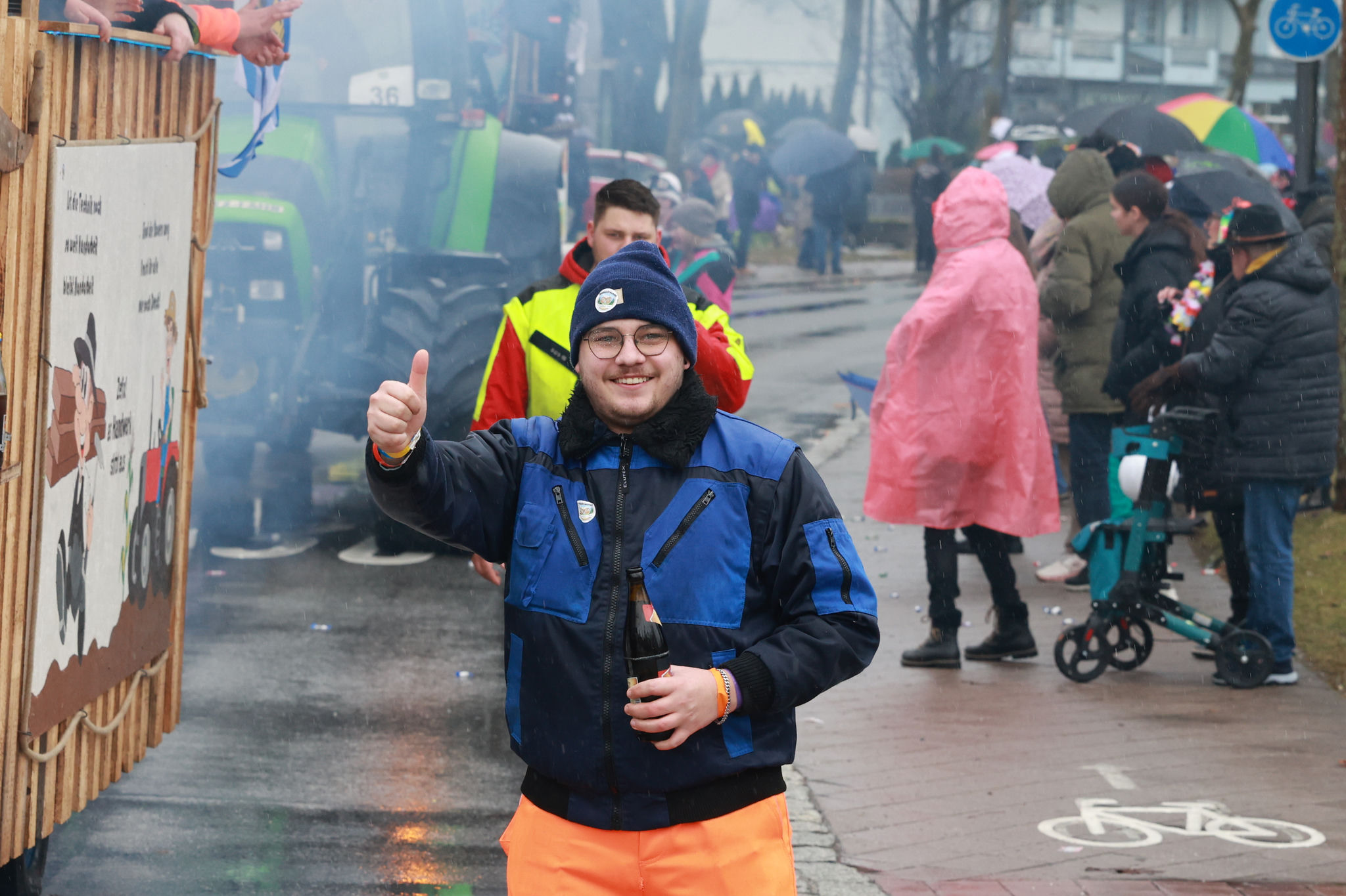 Ob Jung oder Alt, ob trocken oder pitschnass – die ausgelassene Atmosphäre riss alle mit. Die Teilnehmer des Umzugs bewiesen eindrucksvoll: Echte Faschingsbegeisterung lässt sich von Wind und Wetter nicht bremsen.