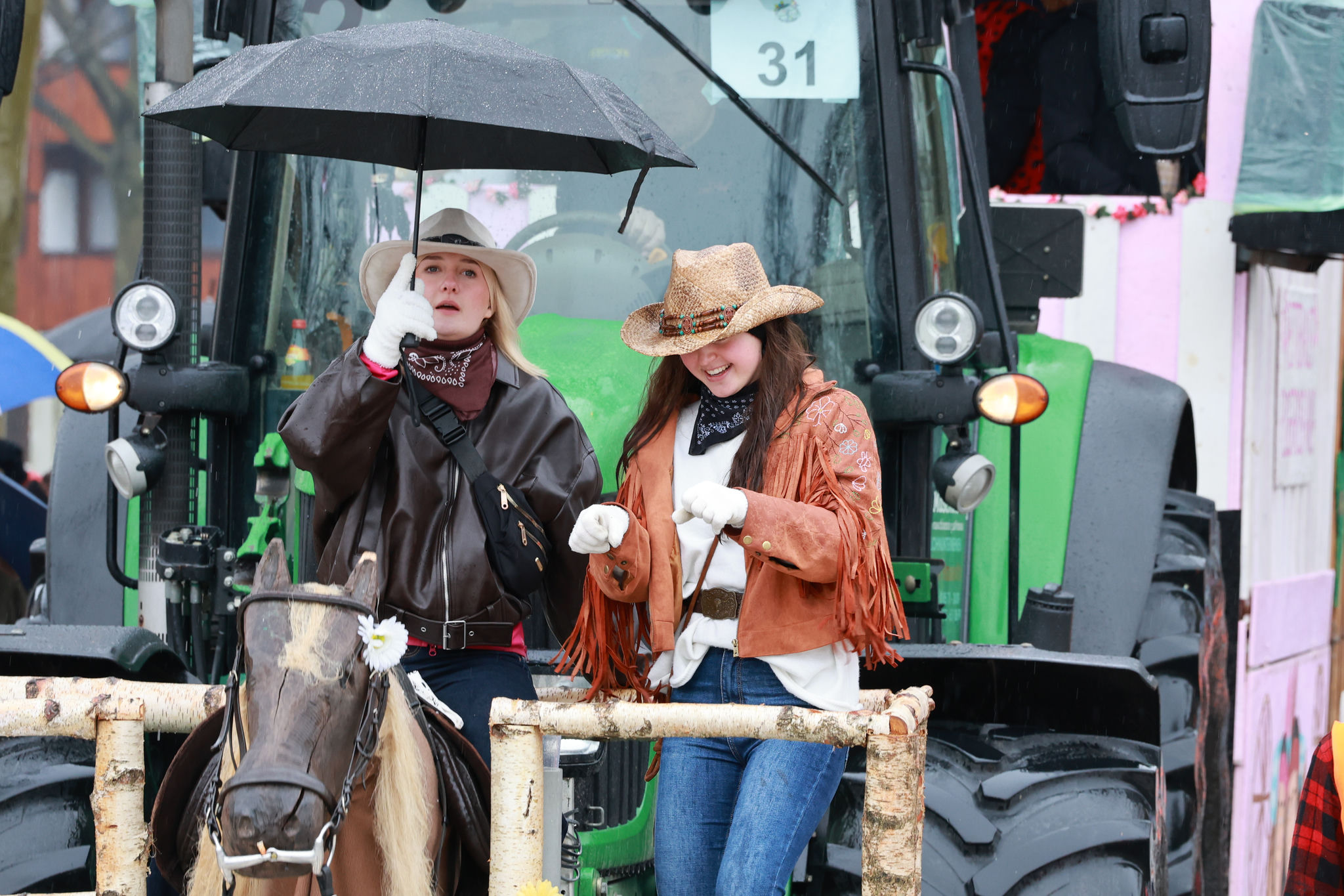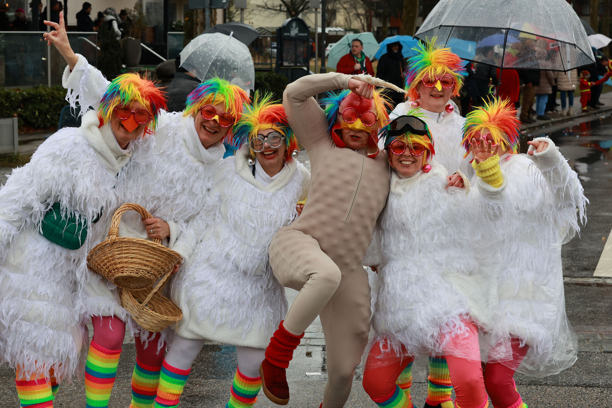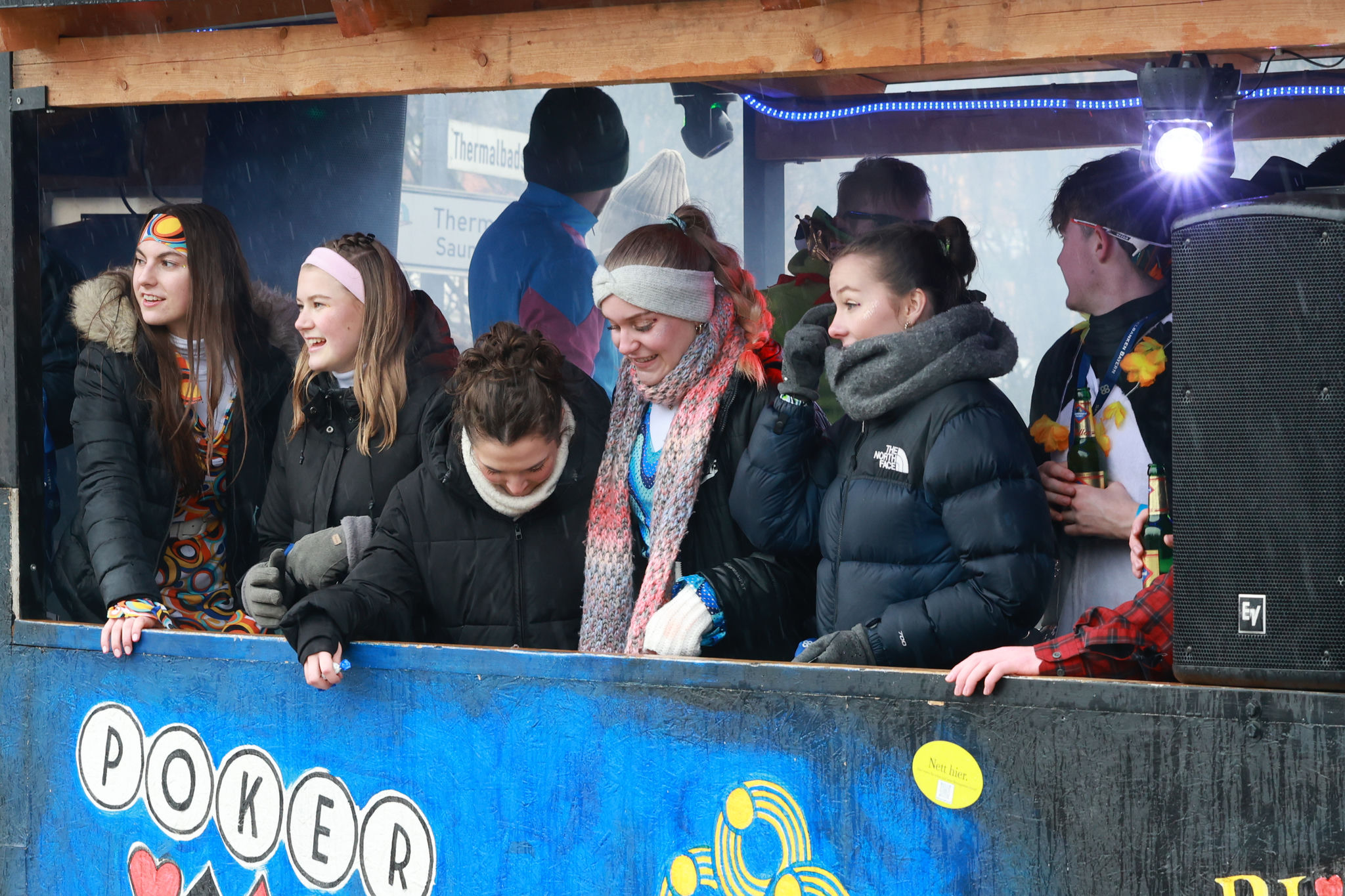 Ob Jung oder Alt, ob trocken oder pitschnass – die ausgelassene Atmosphäre riss alle mit. Die Teilnehmer des Umzugs bewiesen eindrucksvoll: Echte Faschingsbegeisterung lässt sich von Wind und Wetter nicht bremsen.