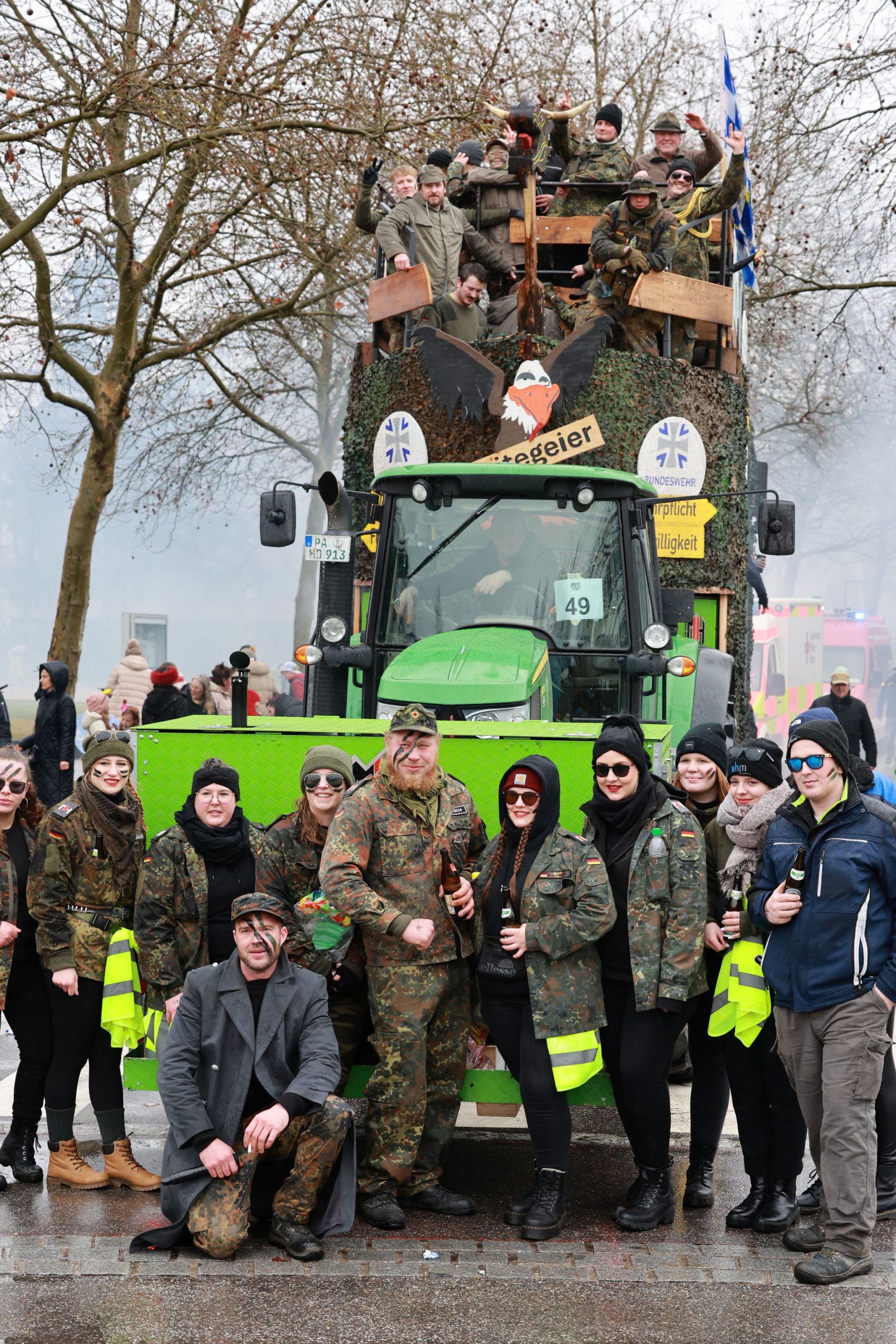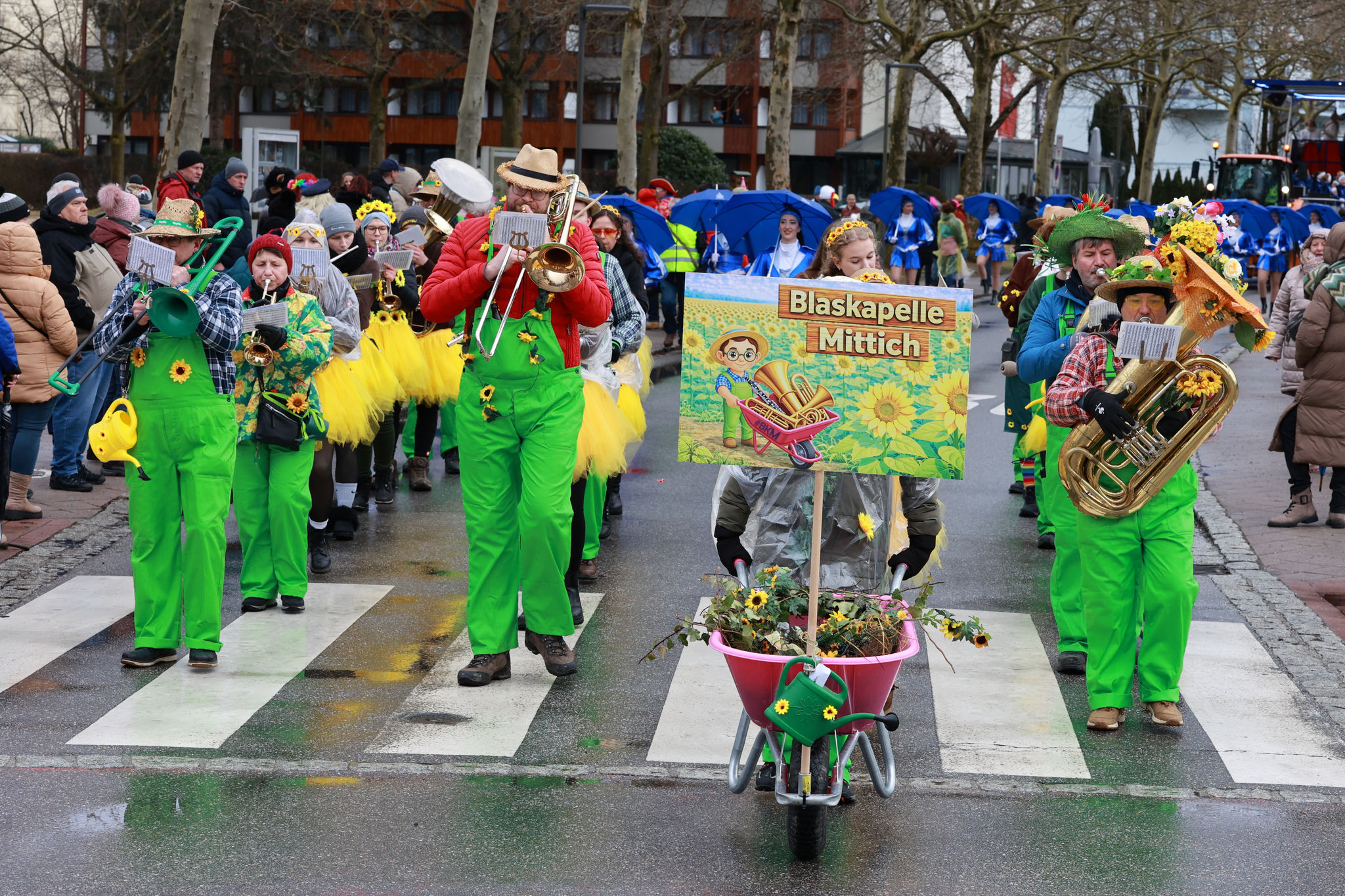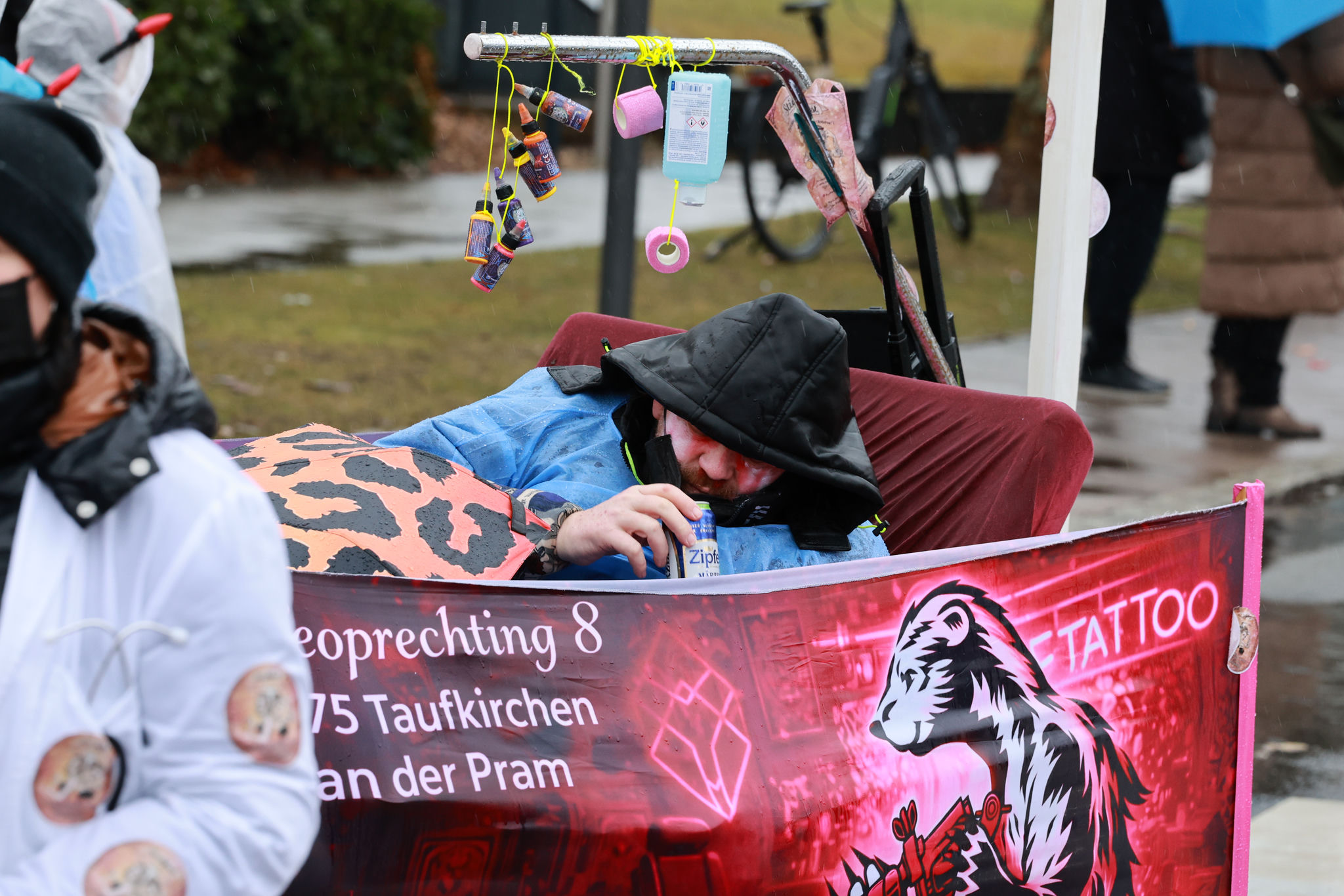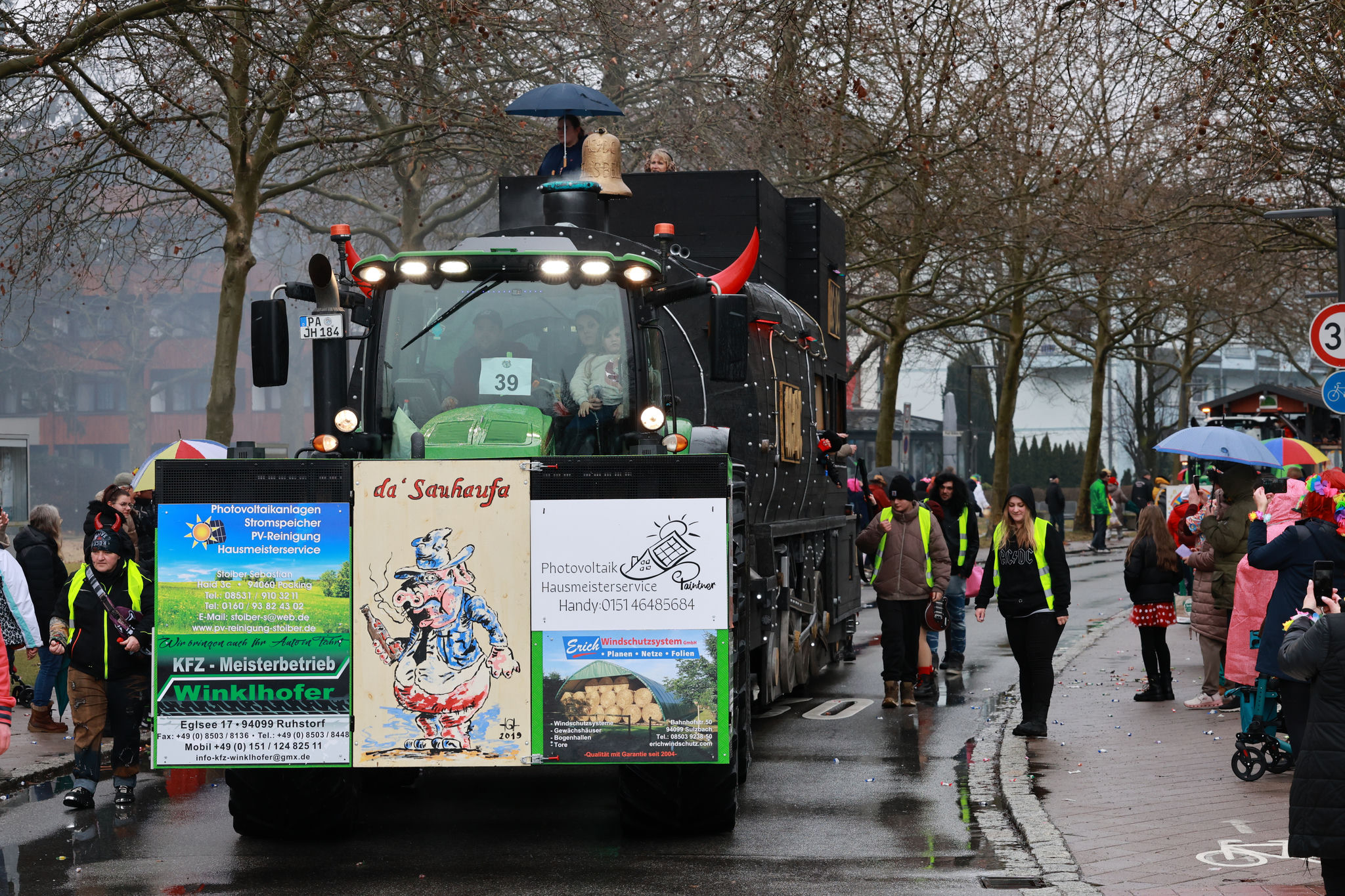 Ob Jung oder Alt, ob trocken oder pitschnass – die ausgelassene Atmosphäre riss alle mit. Die Teilnehmer des Umzugs bewiesen eindrucksvoll: Echte Faschingsbegeisterung lässt sich von Wind und Wetter nicht bremsen.